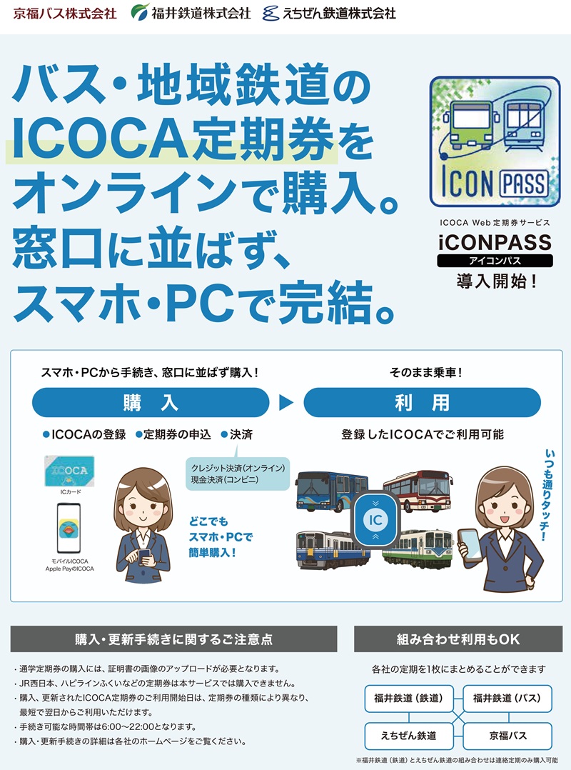 利用開始できます。さらに、京福バスとえちぜん鉄道の定期や、福井鉄道のバスと鉄道の定期など、バスと鉄道の
