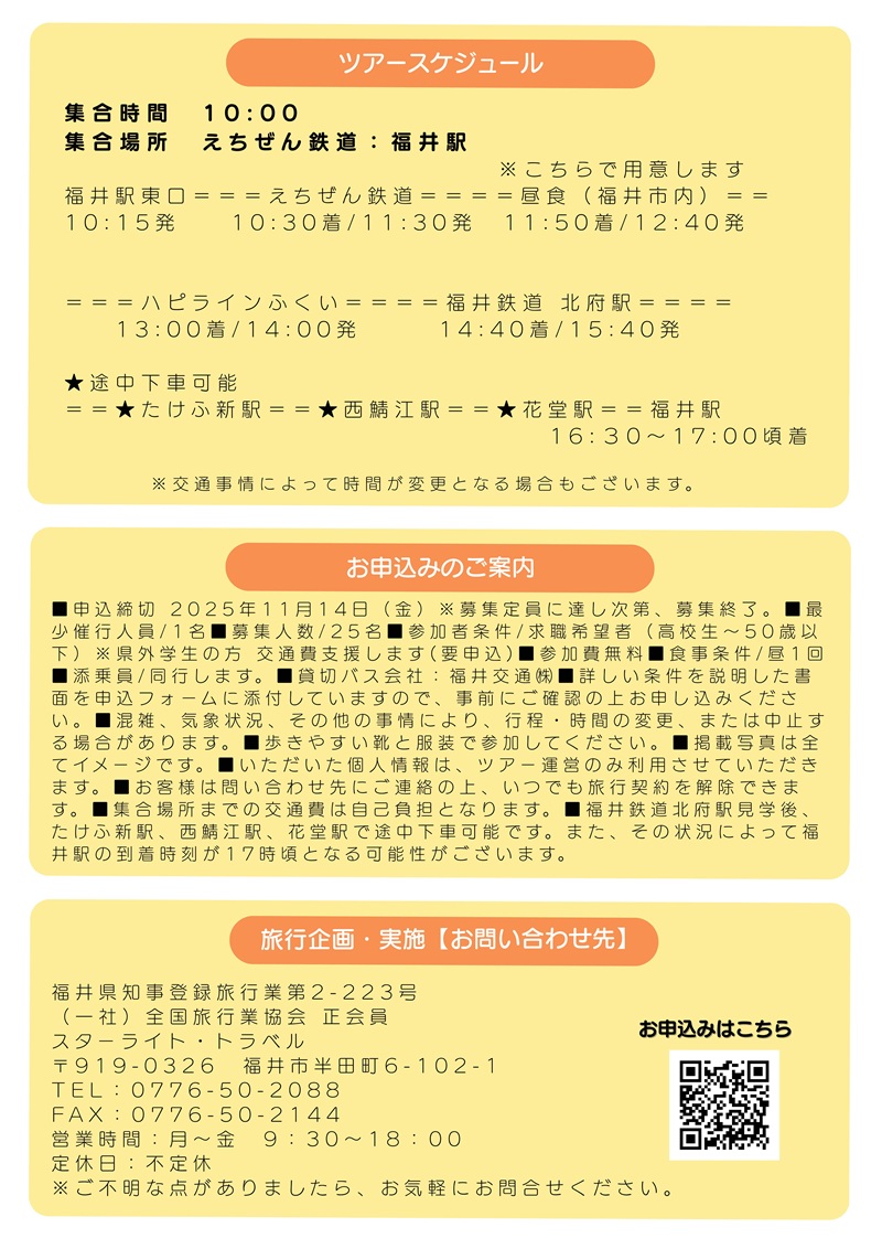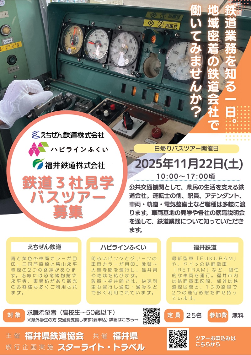 2025年11月22日(土)に求職希望者を対象に、福井県内の鉄道3社(えちぜん鉄道 ハピラインふくい 福井鉄道)を