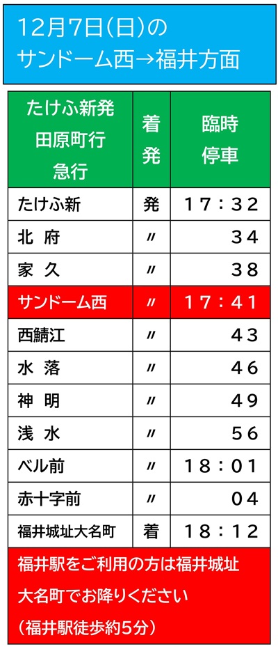 サンドーム福井コンサート開催に伴う臨時列車等のお知らせ(12月6日・7日)