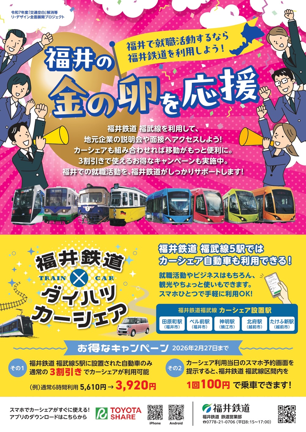 鉄道営業部 0778-21-0706(平日8:15~17:00)