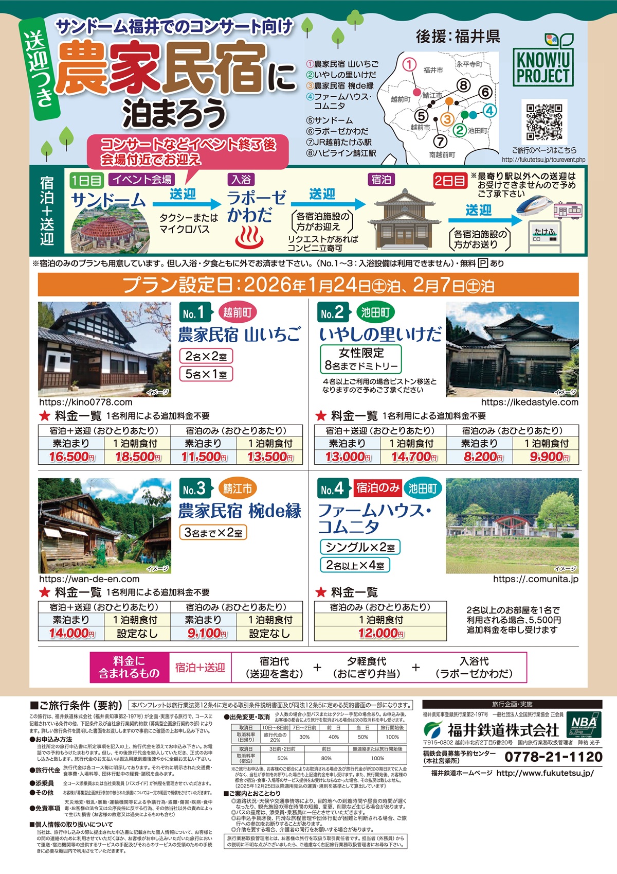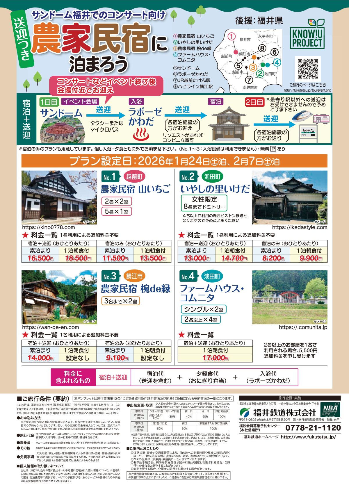 サンドーム福井でのコンサート開催時に、近隣の農家民宿に宿泊するプランをご用意いたしました。