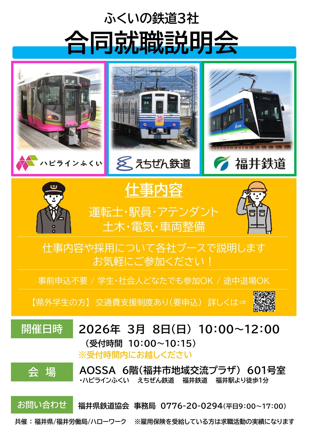 2026年3月8日(日)に、福井県内の鉄道事業者による「ふくいの鉄道3社 合同就職説明会」を