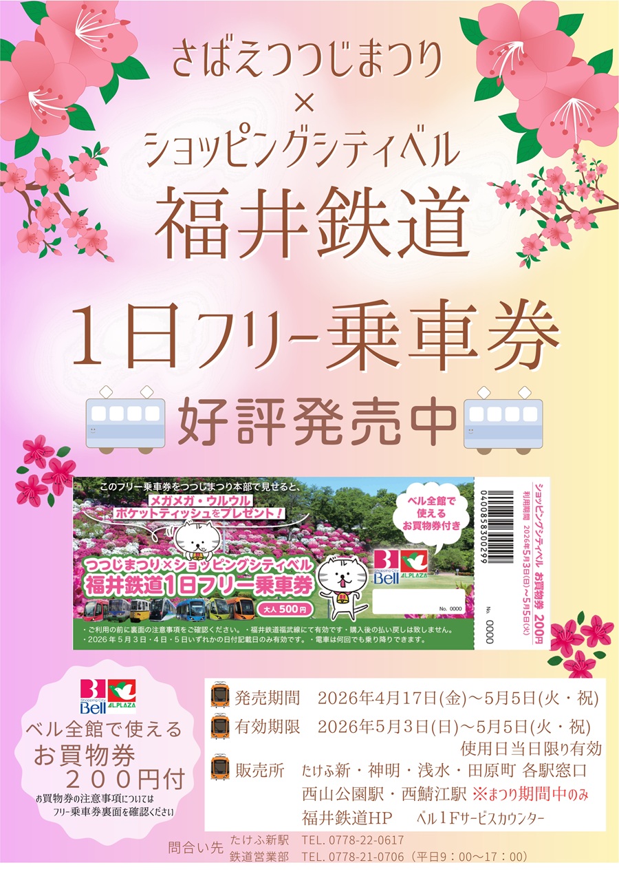 「さばえつつじまつり×ショッピングシティベル 福井鉄道1日フリー乗車券」を発売します