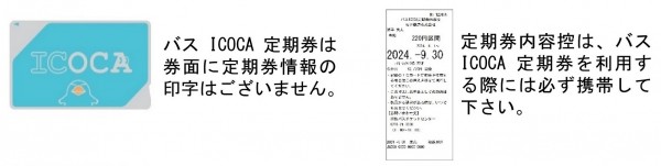 ICOCA定期券の券面には、定期券の情報は印字されません。ご購入の際に、定期券の情報を記載した「定期券内容控」をお渡しいたしますので、ご利用の際は必ず携帯してください。